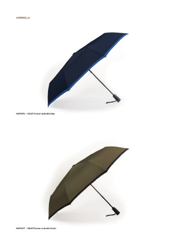 UMBRELLA GEAR POCKET HUF007L - GEAR Pocket umbrella blue HUF007A - GEAR Pocket umbrella black HUF007T - GEAR Pocket umbrella khaki HUF007P - GEAR Pocket umbrella red 32 33