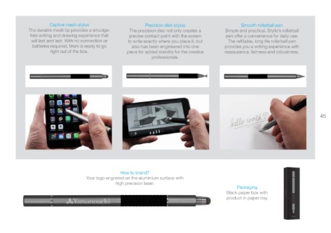 44 Styllo works on all touchscreen devices and is always ready to go. 45